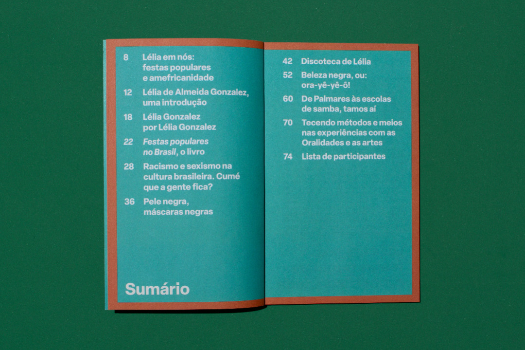 The serif typography in which the texts are written references Lélia's academic production, and the overall visual identity points to a context that is alive and in constant movement.
