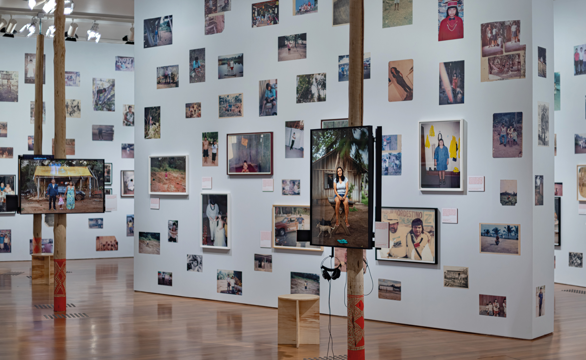 Faced with the challenge of displaying a selection of more than 600 photographs from the historical collection in the exhibition space, we worked with the curators to design wallpaper that covers the entire length of the room. The Paiter Suruí people wrote captions for about a hundred images, which were then displayed alongside them to provide more context about the photos.