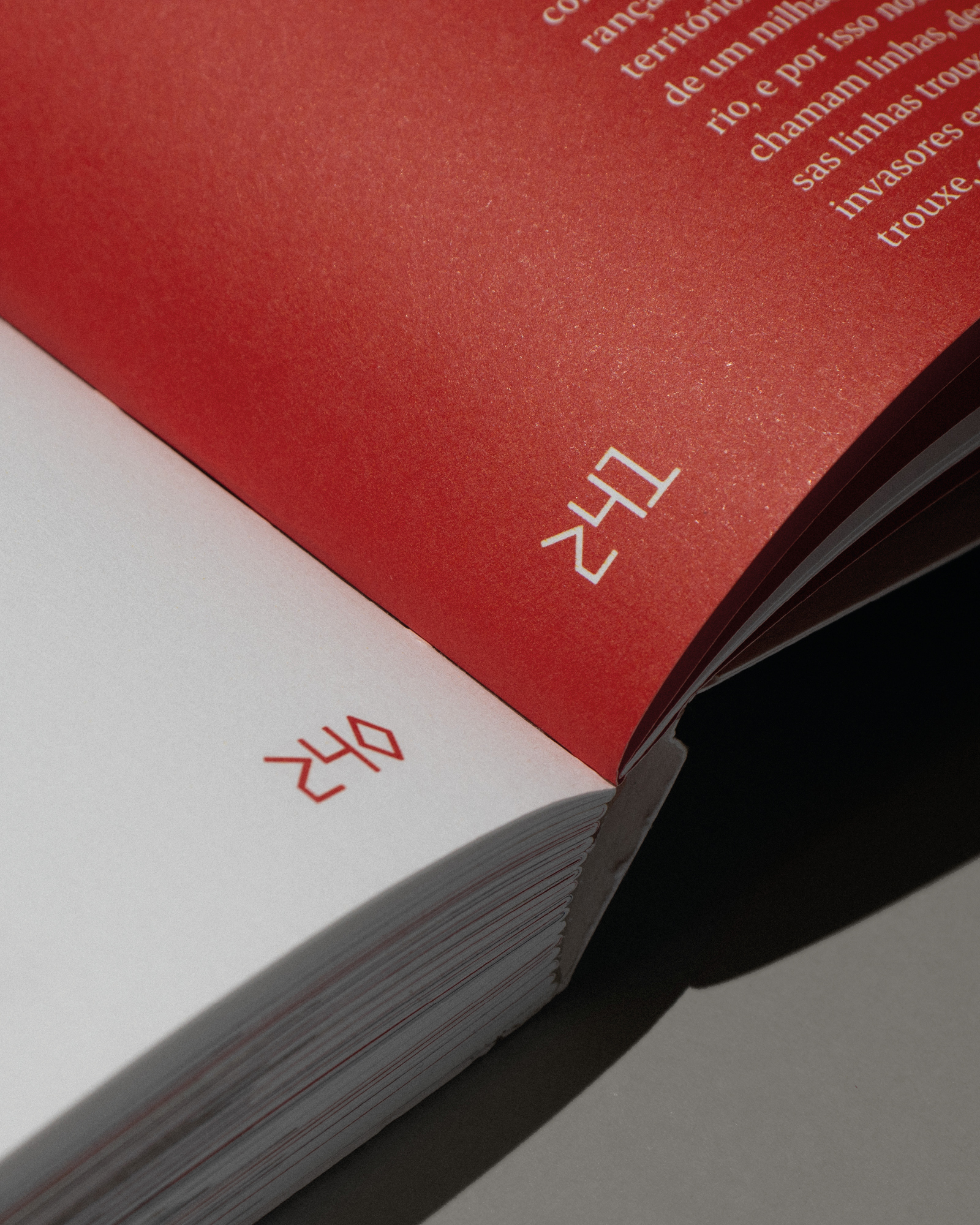 The visual identity is based on the use of red and white, colors present in the adornments used in Mapimaí (Feast of the Creation of the World). The colors, used in the captions and wall texts, are also present in the necklaces, nets, and other materials observed during the visit to the territory during the research carried out for the creation of the visual identity.