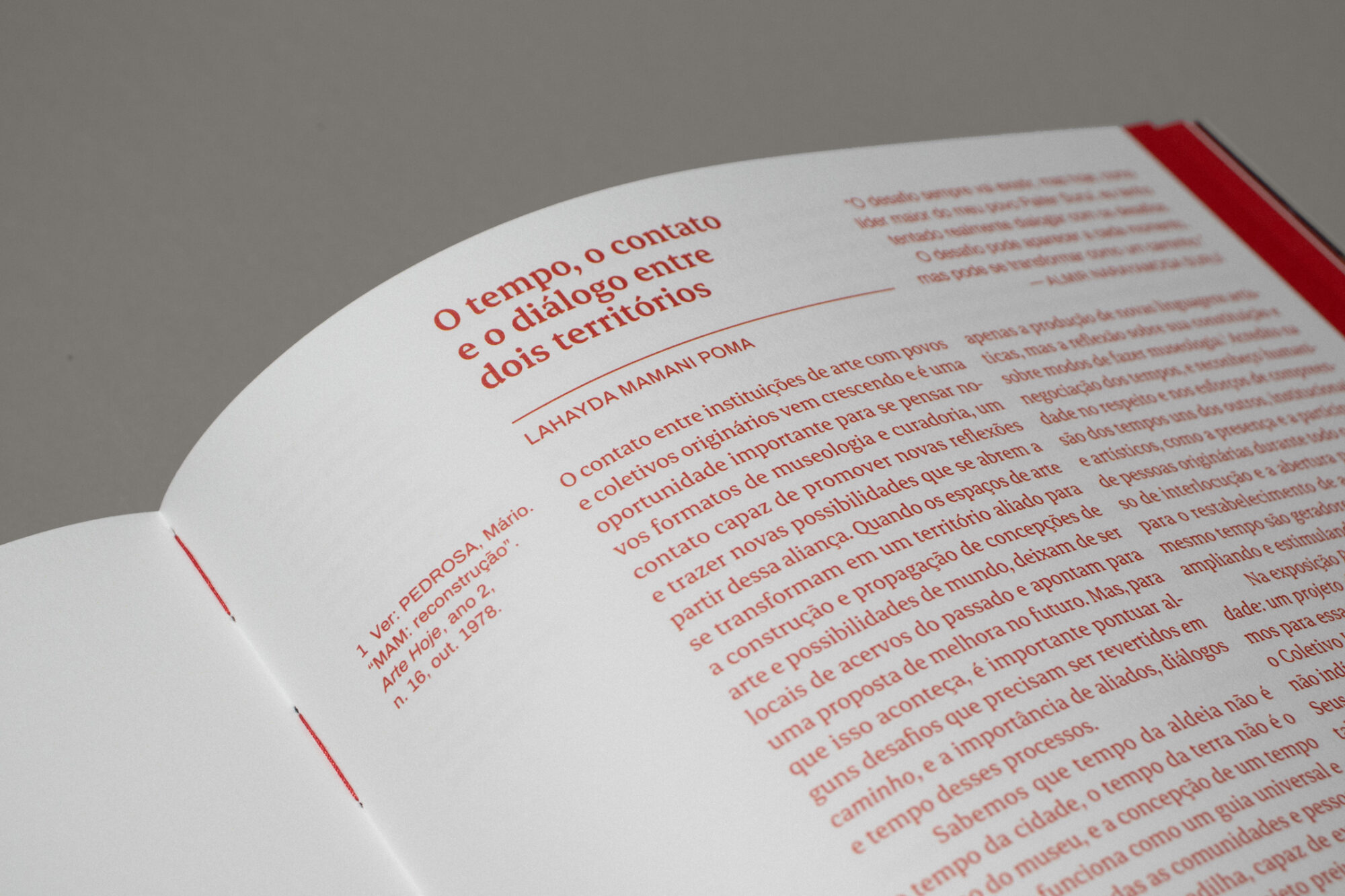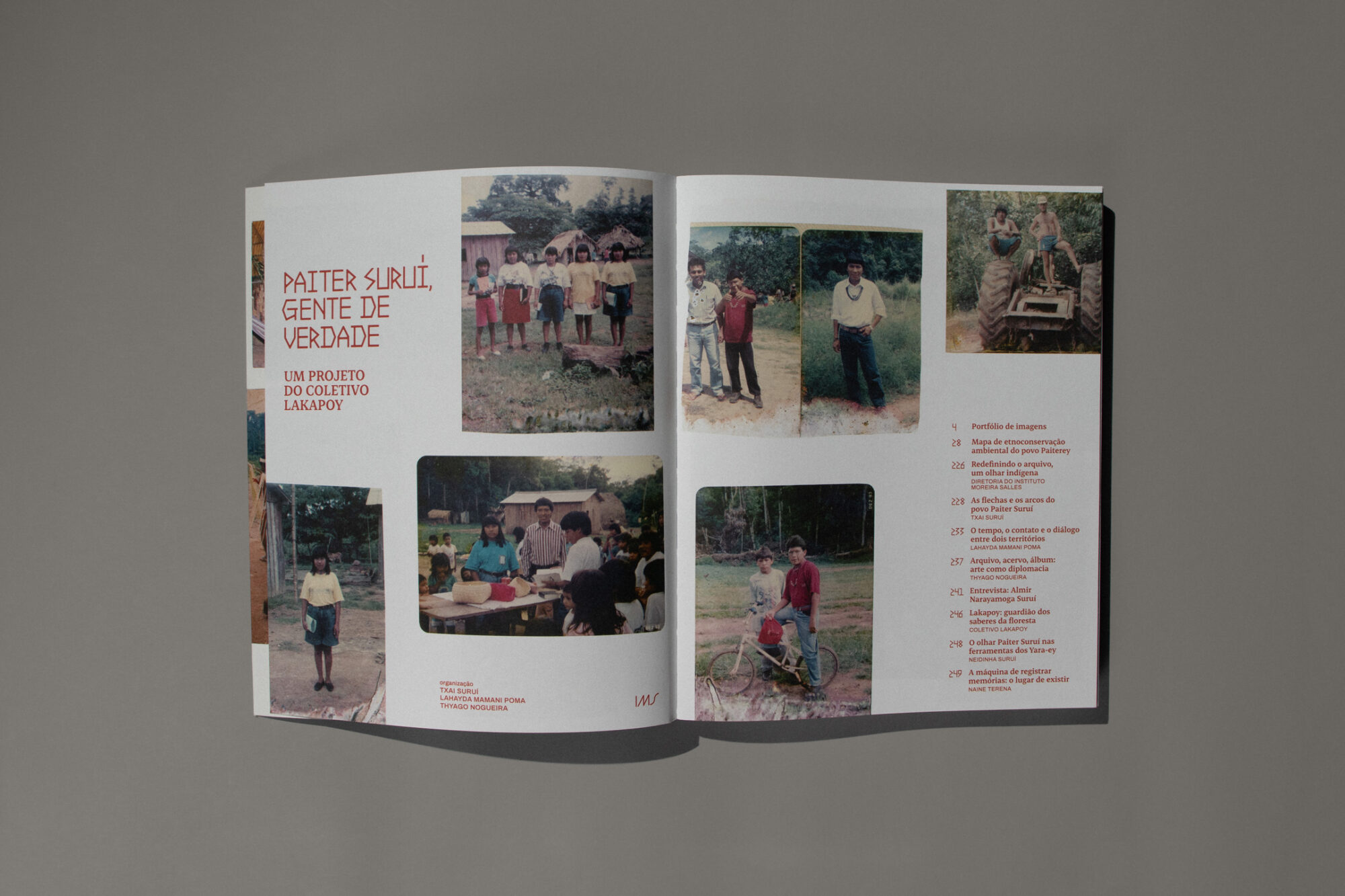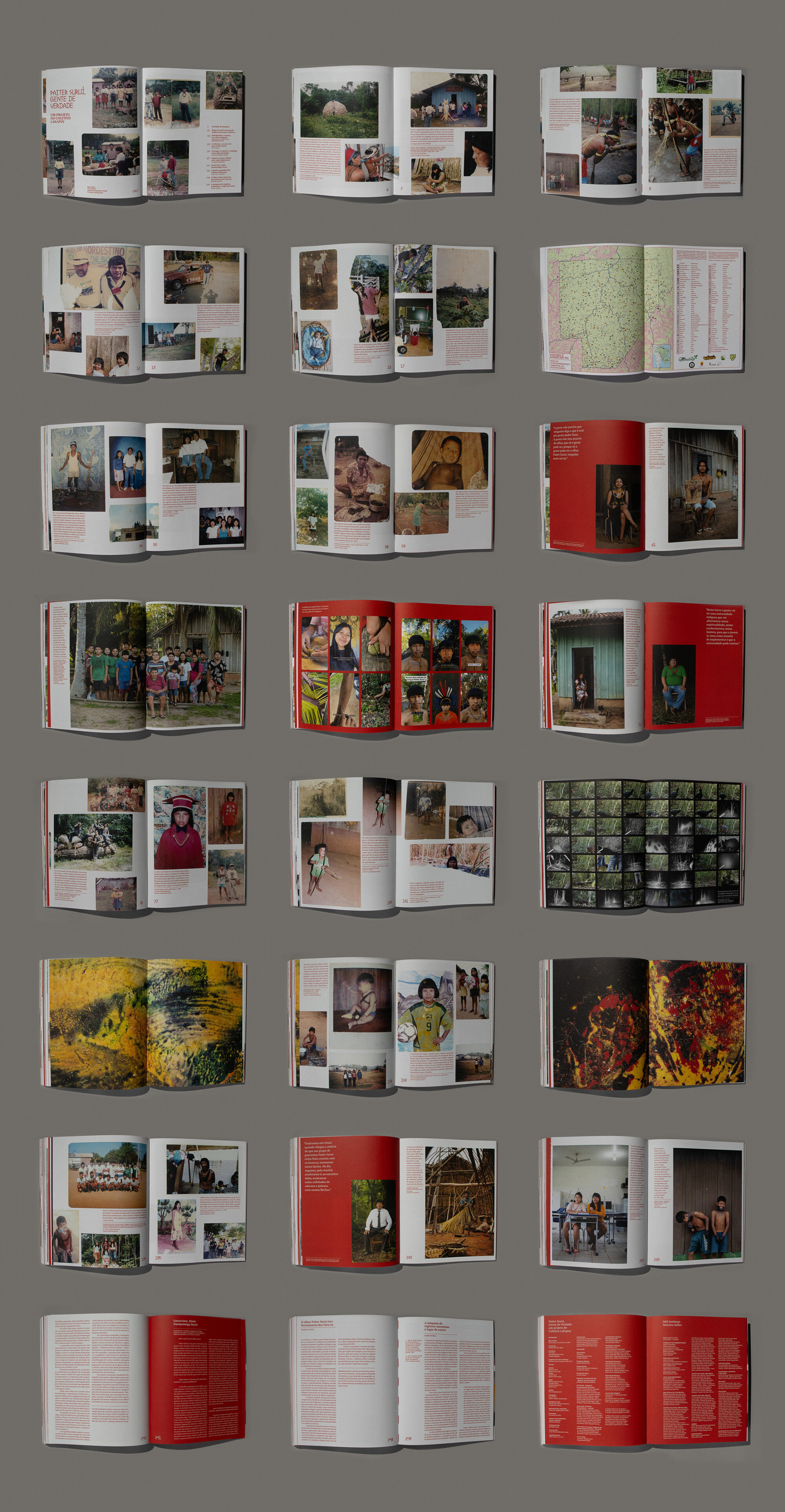 Like the exhibition space, the catalog's pages are filled with images from the collection that had been digitized up to that point. The book also features texts by the curators, an essay by researcher Naine Terena, an interview with Almir Narayamoga Suruí, among other highlights.